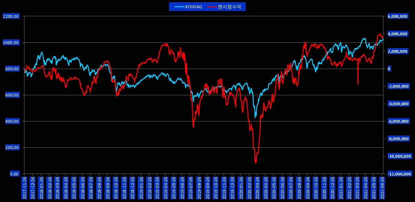 요즘에는 네이버 블로그도 병행해서 글을 쓰고 있습니다. 물론 그간 시스템트레이딩은 꾸준히 하고 있었으며, 하루도 빠짐없이 결과를 기록하였습니다. 대한민국의 주가지수가 사상최고점을 보이고 있습니다. 작년 코로나 사태가 한창이던 3월 말경에 비하면 참으로 격세지감 입니다.