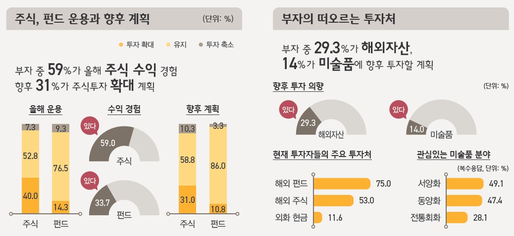 부자의 기준은 총 자산이 100억원 이상이고 부동산 자산 50억원, 금융자산 30억원 이상을 기준으로 삼고 있습니다.