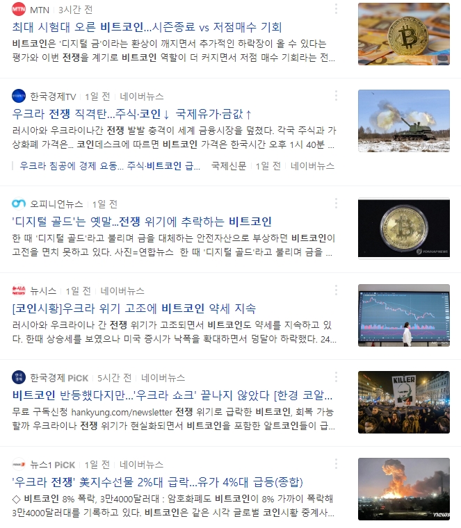러시아가 우크라이나를 침공했습니다. 당연히 주식과 원자재등 자산가치가 요동쳤고 각종 뉴스가 쏟아져 나왔습니다. 또한 여지없이 비트코인 관련 뉴스도 폭증했습니다.