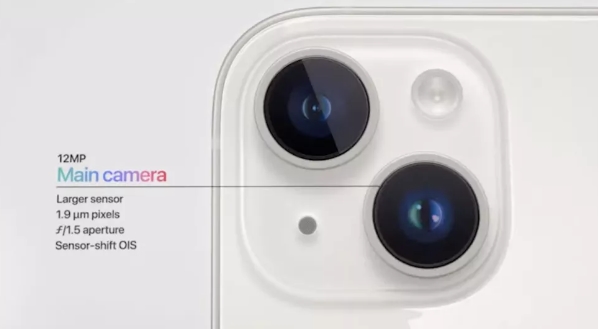 아이폰 14는 기존의 아이폰보다 훨씬 개선된 카메라 기능을 제공한다. 메인센서는 픽셀이 훨씬 더 크며 조리개 및 센서 시프트 이미지 안정화가 빨라 아이폰 14는 저조도 성능이 49% 향상되었다. 야간모드는 노출이 두배나 개선되었다.