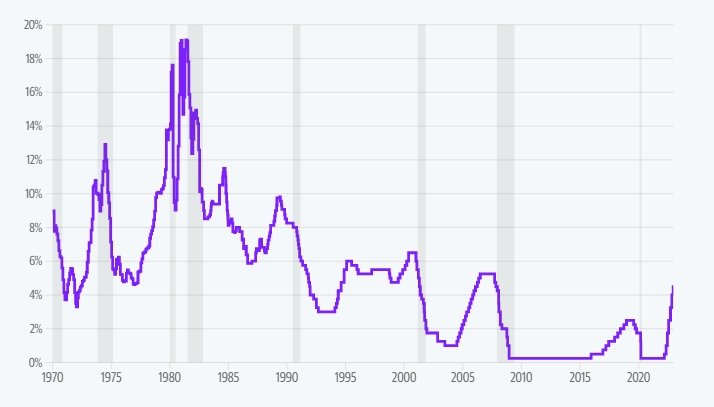 연방준비제도이사회(FRB)는 수요일 단기금리를 0.50% 인상해 기준금리를 2007년 이후 최고 수준으로 끌어올렸다. 수요일의 움직임으로 연준기금 금리는 4.25%에서 4.5퍼센트 범위로 올라 중앙은행이 금리를 4.25% 인상한 해를 마무리했다.