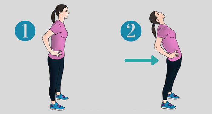 - 손바닥을 허리에 대세요. 긴장을 풀기 위해 천천히 심호흡을 몇 번 하세요.